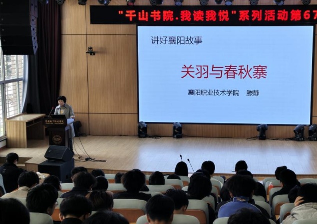 11月13日下午,“千山书院・我读我悦”系列活动第67场在博学楼报告厅举行。学校图书馆特邀公共课部滕静教授带来“讲好襄阳故事——《关羽与春秋寨》”主题讲座,为汽车工程学院师生们献上一场兼具历史厚度与文化温度的知识盛宴。