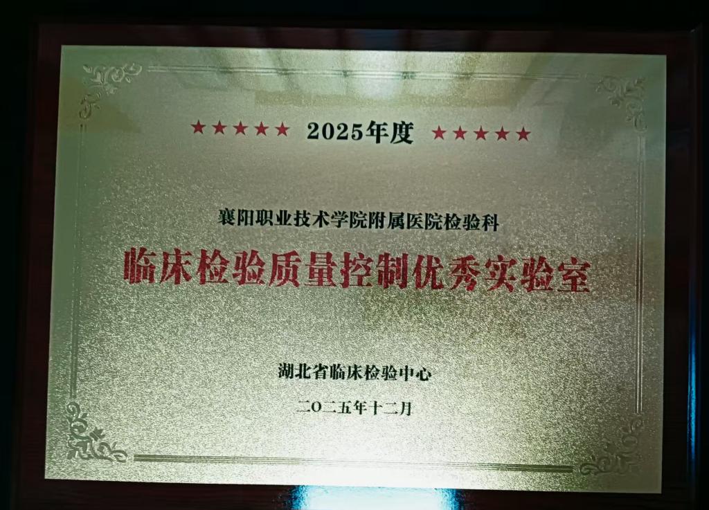 近日,在湖北省临床检验质量控制总结暨检验结果互认工作会议上,附属医院医学检验科凭借健全的质量管理体系、精准的检测能力与突出的质控成效,连续第二年被湖北省临床检验中心评为“临床检验质量控制优秀实验室”。