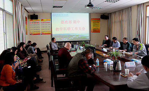 4月15日下午,思政部全体教师在德馨楼一楼会议室参加了部门期中教科研工作大会,会议由思政部主任王欣主持。