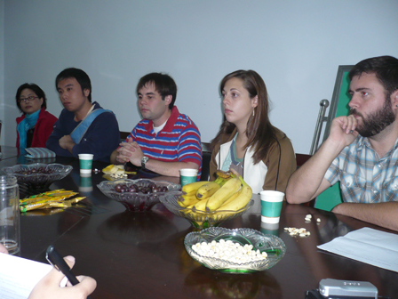 外国语学院副院长张菊敏首先对两名新来的外籍教师表示热烈的欢迎和由衷的感谢,并简要地介绍了外国语学院专业设置基本情况和外籍教师所属研究室。教学秘书杨丽详细介绍了该院教学工作流程和环节、教学基本要求和教学常规管理等内容。各专业研究室主任和外教分别就专业教学要求、授课计划撰写,教材的使用,如何调动学生学习的积极性等方面进行了座谈。