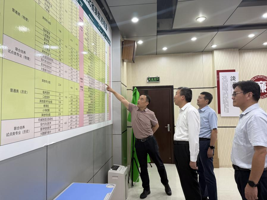 8月13日下午,校长余荣宝、党委副书记赵涛到学校招生录取现场慰问,指导招生录取及咨询工作。院长办公室、招生工作处工作人员参加活动。