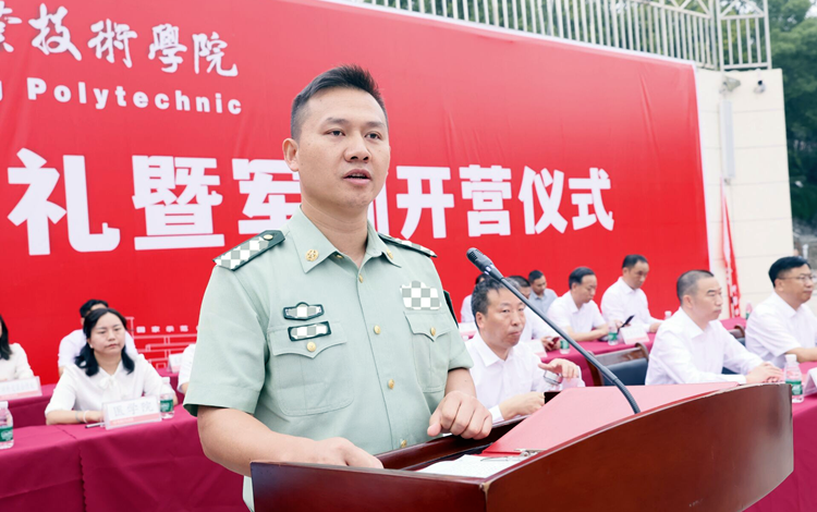 承训部队领导以入伍二十多年老兵的身份和同学们亲切分享:在困难中坚持,磨练意志;要求学生以军人的标准严格要求自己,培养优良作风;勉励同学们将军训成果内化于心,外塑于形,应用到实际的学习和生活中,让自己不断成长成才。
