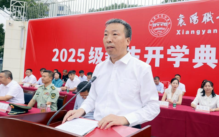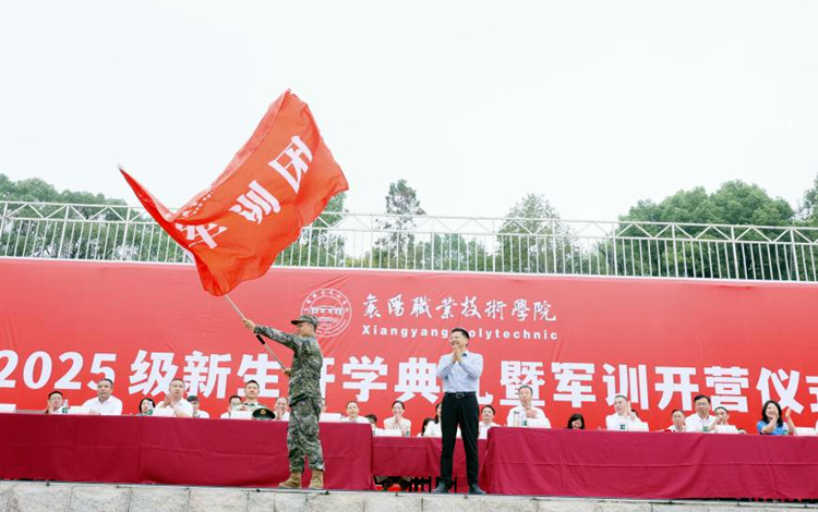 在雄壮庄严的国歌声中,开营仪式拉开帷幕。校长余荣宝致辞。他介绍了新生规模及分布、学校办学理念以及近年来取得的系列喜人成绩,并在学校全面开启“二次创业”新征程中对同学们提出三点希望:希望同学们立鸿鹄之志,筑牢信仰之基,做“心怀家国”的有志青年;希望同学们砺栋梁之能,锤炼过硬本领,做“腹有诗书”的有识青年;希望同学们担时代之责,永葆奋斗本色,做“知行合一”的有为青年。他勉励2025级新生:只争朝夕,不负韶华,肩扛使命,奋勇向前,把自己锻造成有理想、敢担当、能吃苦、肯奋斗的新时代强国青年,以青春之笔书写强国新征程的襄职篇章!