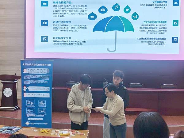 讲座围绕“艾滋病离我们有多远”“科学防护与自我管理”“消除歧视与关爱他人”三大模块展开。授课教师结合近年来高校青年学生中的真实案例,以图文并茂的形式,系统讲解了艾滋病的传播途径、预防手段、检测渠道及治疗进展,重点强调了正确使用安全套在预防性传播疾病中的关键作用。在互动环节,通过知识问答、道具演示等方式,生动示范了防护技能,引导学生树立“做自己健康第一责任人”的意识。