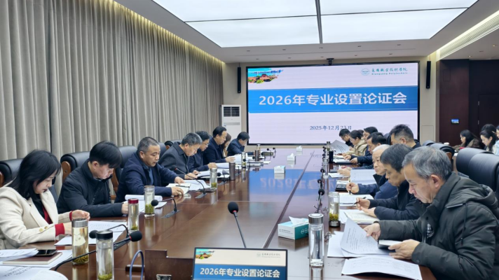 12月23日下午,学校在厚德楼五楼会议室召开2026年专业设置论证会。教务处、招生工作处、创新创业与就业指导中心、产学研工作处、评建办、质量办、汉江职业教育研究院等部门负责人,各院(部)院长、教学副院长,学校教学工作委员会成员参加会议。会议由副校长赵劲松主持。校长余荣宝、副校长耿保荃出席会议并讲话。