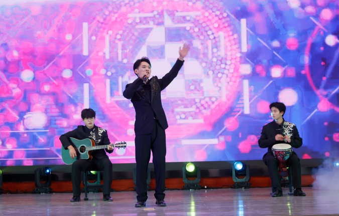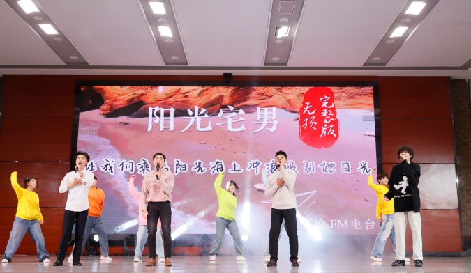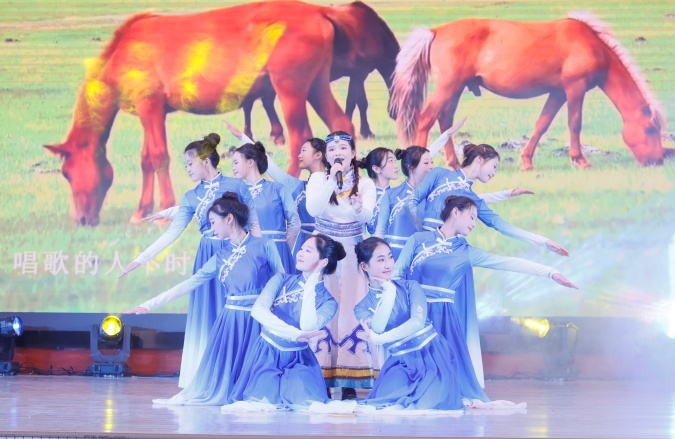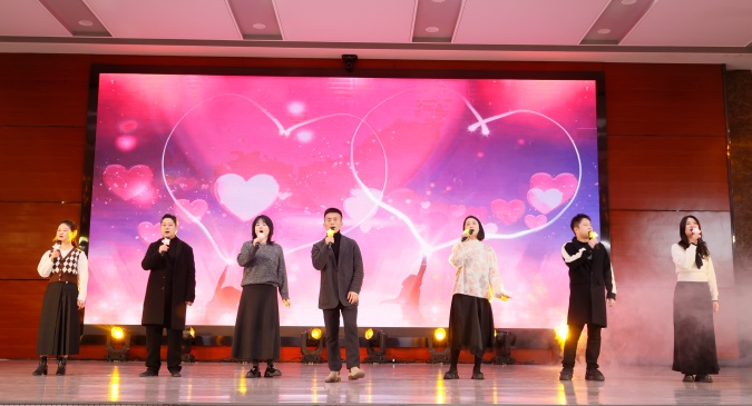 经过初赛、复赛的选拔,15组优秀选手站上总决赛舞台。比赛在观众热情的欢呼声中拉开帷幕。选手们依次登台,用各具特色的嗓音演绎不同风格的歌曲。比赛中既有经典老歌的深情回味,也有流行金曲的时尚表达;既有民族唱法的悠扬婉转,也有通俗唱法的真挚动人。歌曲《乌兰巴托的夜》旋律悠扬绵长,选手的演唱如月光般温柔洒落;歌曲《锦瑟》将古典文学的情感深度与现代音乐的表达相融合,让观众在古典韵律中感受中华传统文化的独特魅力;师生合唱《阳光宅男》瞬间点燃全场氛围;歌曲《灯火里的中国》以恢弘大气的演绎,唱出对家国河山的深情礼赞,勾勒出国泰民安的盛世图景……压轴曲目《爱因为在心中》由徐琛、文乐、刘黎明、蔡瑞雪、呙巧敏、杨群、武雪琦七名老师倾情演唱,歌声传递出师者对学子的深切关爱与暖心守护,让现场充满了温情与感动。