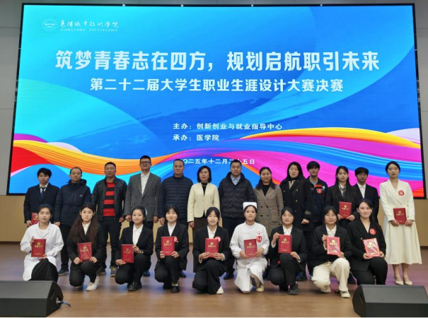 12月25日下午,我校第二十二届大学生职业生涯设计大赛在高铁南路校区图书馆报告厅圆满落幕。本次大赛由学校创新创业与就业指导中心主办,医学院承办,参赛对象为2025级一年级新生,旨在全面普及大学生职业生涯规划理念,引导学生科学合理地规划学业与职业发展。近600名师生共同观摩了这场精彩纷呈的赛事。