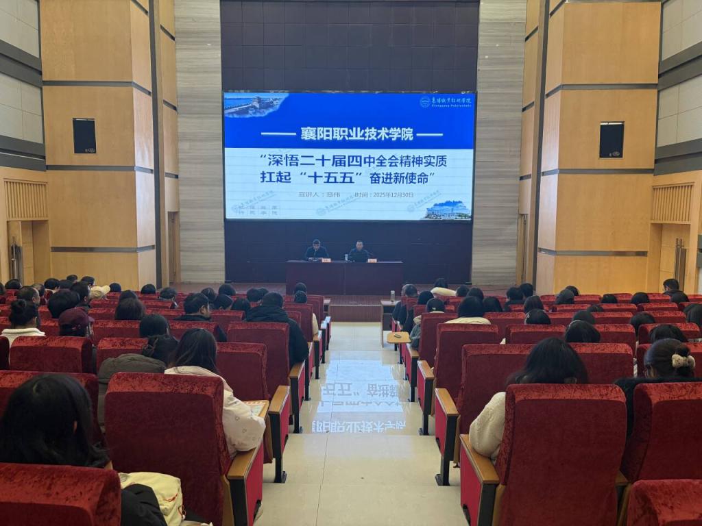 12月30日下午,副校长章伟走进商学院,向教师代表和学生干部宣讲党的二十届四中全会精神。