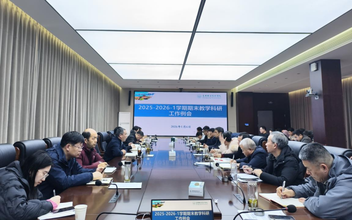 1月6日下午,学校在厚德楼五楼会议室召开2025—2026—1学期期末教学科研工作会议。教务处、产学研、质量办、评建办、汉江研究院、信息技术中心、对外交流合作处等部门负责人,各院部院长、教学副院长、教学秘书参加会议。副校长赵劲松出席会议并讲话。会议由教务处处长冯依锋主持。