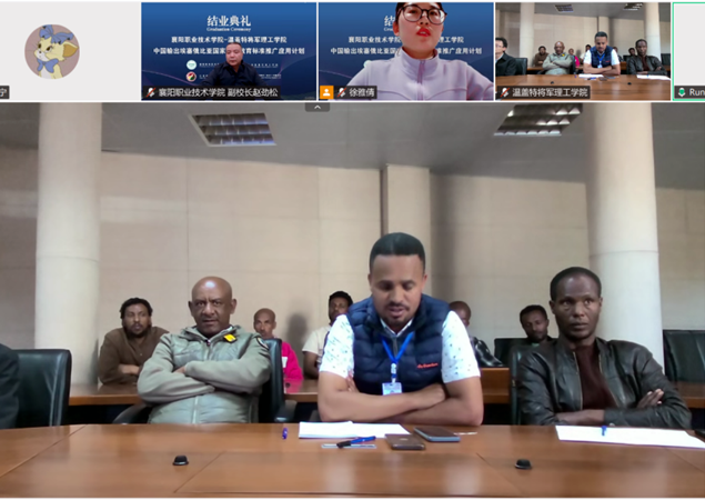 2025年12月26日至2026年1月14日,我校农学院以线上直播的形式,围绕畜牧兽医、农产品加工与质量检测、现代农业技术、设施农业与装备四大核心专业,通过6个特色主题,采用“理论讲解+实操演示+互动答疑”的全方位培训方式,面向埃塞俄比亚温盖特将军理工学院师生开展了“标准输出与职业技能培训”。1月14日下午,项目结业典礼顺利举行。