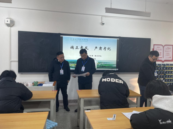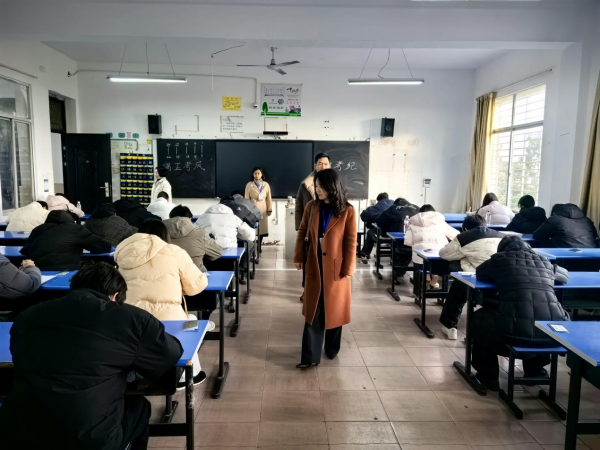 1月15日至17日,我校2025—2026学年第一学期期末考试如期举行。为保障考试工作规范有序,严肃考风考纪,学校党委书记陈礼龙、校长余荣宝率队,组织教务处、学工处、评建办、产学研、质量办、校团委、汉江研究院等职能部门负责人组成巡视专班,深入各教学单位开展考场巡查工作。