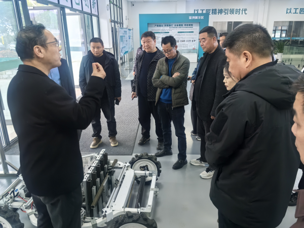 会后,汽车工程学院(智能制造学院)党总支书记程洪涛陪同与会领导参观了学院实训室,详细介绍了实训设备配置、机械装备应用及师生技能竞赛获奖成果,展示了学校在实践教学、技能培育方面的扎实成效。
