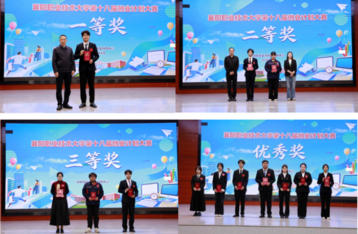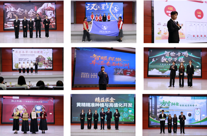 13个项目通过班级初赛、院级复赛、校级预选赛,进入总决赛。大赛采用“项目展示+评委提问”的形式进行。最终,医学院《昇启本草・源创健康—— 阳昇源现代中药科学养生的引领者》项目获得本次大赛一等奖;农学院《“精”益求“金”——黄精精准种植与高值化开发》、汽车工程学院《智眼探微》项目获得二等奖;汽车工程学院《智巡随行》、师范学院《智汇启航——大龄智力障碍人群就业转衔服务》、建筑与设计学院《扣上年画》项目获得三等奖;商学院《一麻当先》,医学院《玉露千金·云栖养润膏》,农学院《方寸阳台—景观微空间创意营造服务商》、《科创抗菌肽,兴牧向未来》,师范学院《汉江星声》,人工智能学院《智检千畴,数护万粮》,建筑与设计学院《城垣智检——古城墙表面风化智能诊断与数字化管理领跑者》七个项目获得优秀奖。