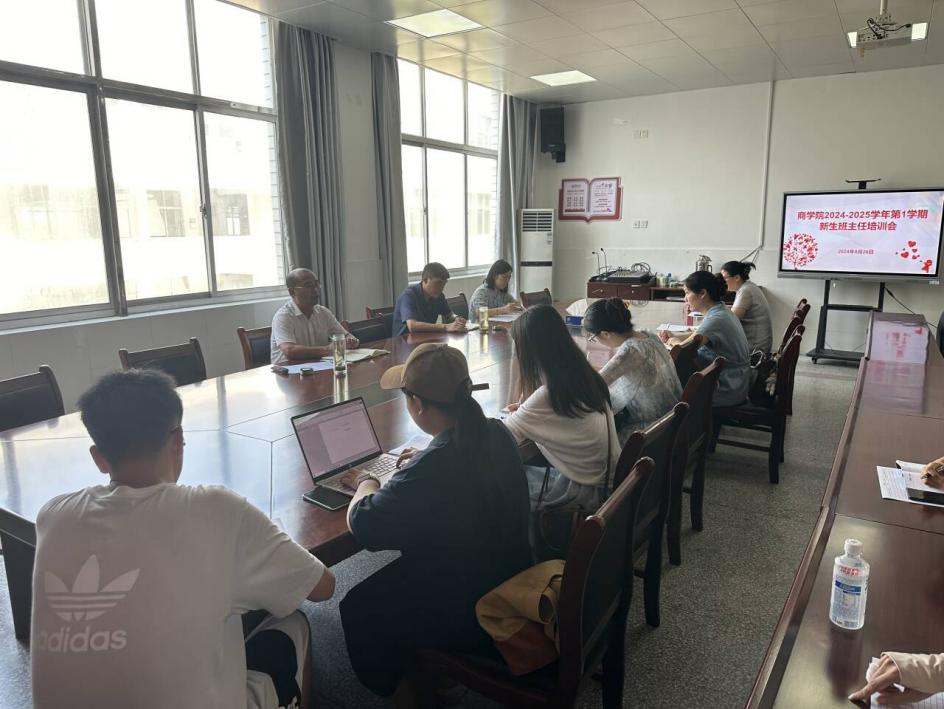 为确保迎新工作顺利进行,学生管理工作有效开展,进一步提升新生班主任工作能力和育人水平,商学院于8月26日下午,在笃学楼二楼会议室召开2024级新生班主任培训会。党总支书记王建宏、副院长梁光源、学工科科长房莹及全体新生班主任参加会议。