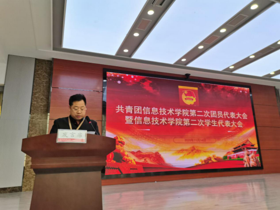 11月14日,共青团信息技术学院第二次团员代表大会暨学生代表大会在智造工业中心A栋报告厅隆重举行。校团委科长陈耀,信息技术学院党总支书记汤才虎、副院长张坤、学工科科长高延伟、学工科全体老师及全体团学代表参加了开幕式。