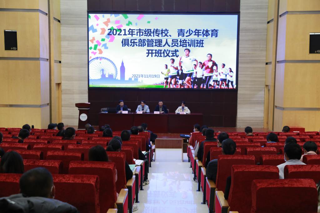 11月19日,由襄阳市文化和旅游局主办、公共课部承办的2021年市级传校、青少年俱乐部管理人员培训班在主校区图书馆一号学术报告厅开班。襄阳市文化和旅游局竞赛训练科科长庞国兵、副科长苏钰媛及公共课部党总支书记陈建波、副书记杨森等出席开班仪式。襄阳市挂牌的传统体育项目学校和体育俱乐部项目主要负责人及管理人员参加培训。