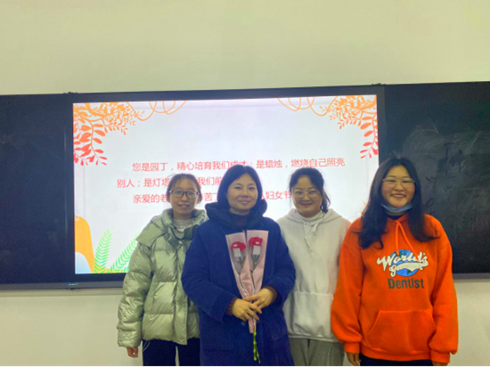 春光融融,万物生辉。在三八妇女节来临之际,信息技术学院团总支组织同学们,用实际行动感谢他们心中的女神——女教师们。当天,同学们手持康乃馨,齐声诵读祝福语,女教师们惊喜、感动,激动的心情久久不能平复。