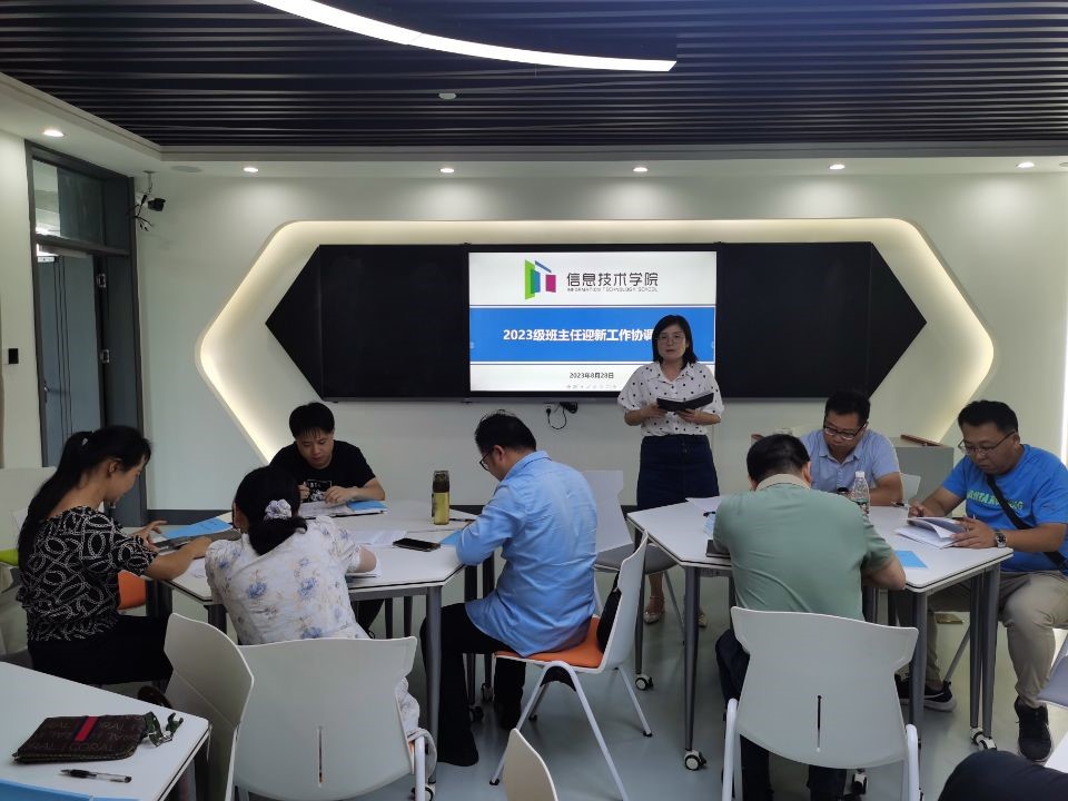 8月28日下午,信息技术学院召开新生班主任培训会。党总支书记汤才虎、副院长高延伟、学工科长徐琛及2023级全体新生班主任参加会议。