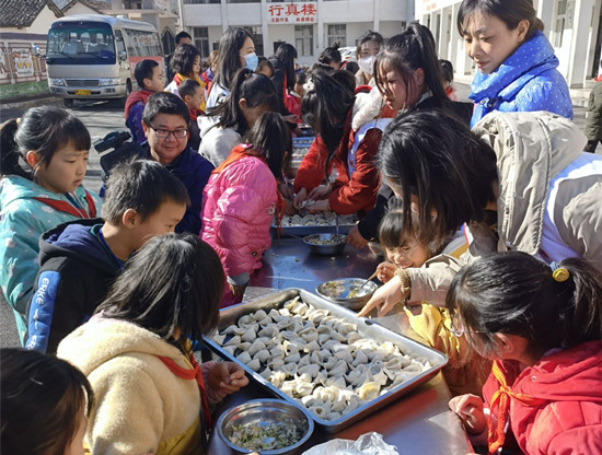 和面、剁馅、擀皮、包饺、烧水、煮饺,每个环节都由师生志愿者们带着留守孩子们一起学,一起做。当一碗碗热气腾腾的饺子端上餐桌时,孩子们迫不及待地吃起了自己动手包的美食。“在冬至时节开展关爱留守儿童包饺子活动,既是劳动教育形式的创新,也是陪伴成长活动形式的创新,更是社会服务活动形式的创新。”彭建设说。