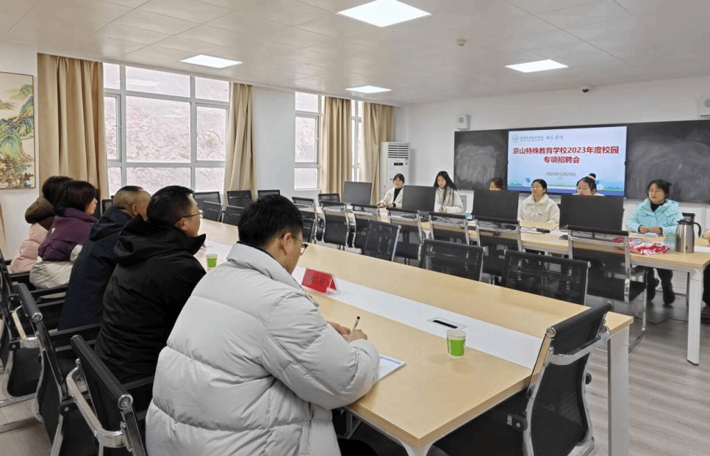 2023年12月29日上午,荆门市京山特殊教育学校2023年校园专场招聘会在师范学院博爱楼名师工作室举行。经过前期沟通协调,此次招聘会采用现场报名、资料审核、面试招聘一站式服务。