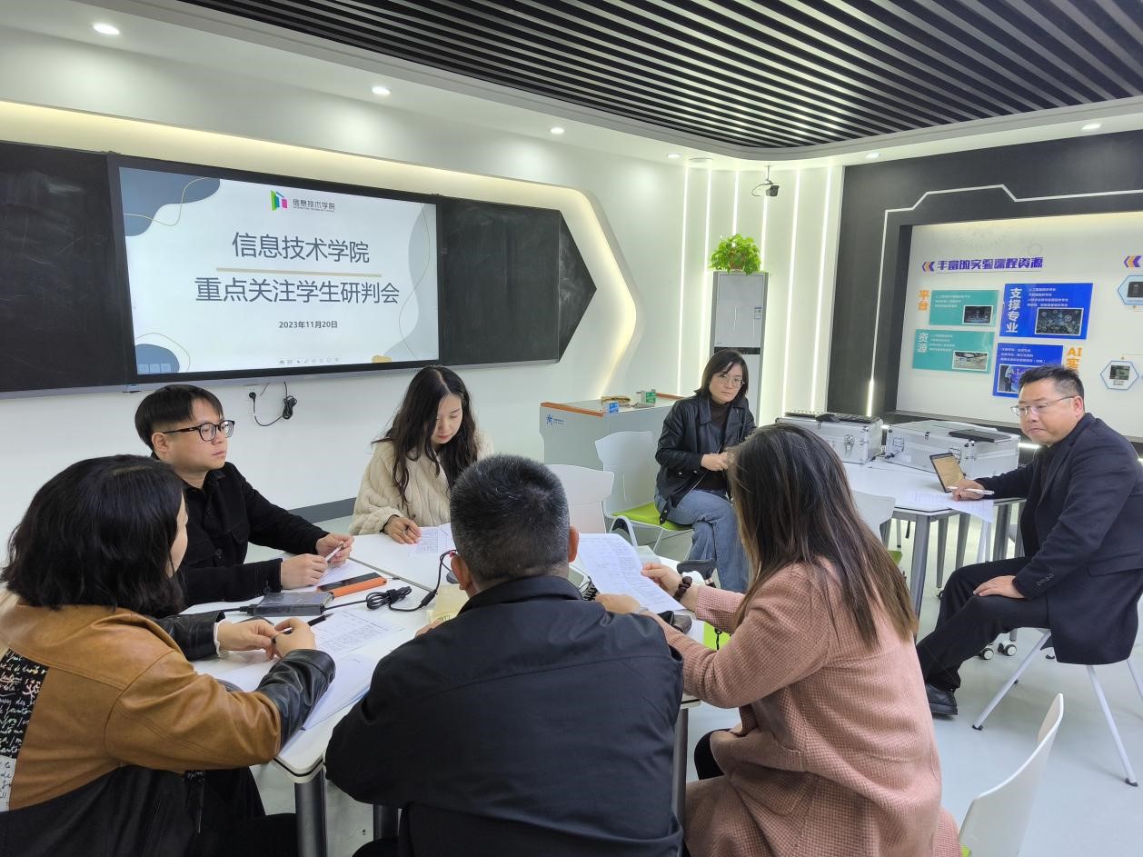 11月20日,信息技术学院在智造工业中心B406召开学生教育重点工作研判会。心理健康教育中心杜慧楠老师,信息技术学院党总支书记汤才虎、副院长高延伟、全体学工科人员及相关班主任参加会议。
