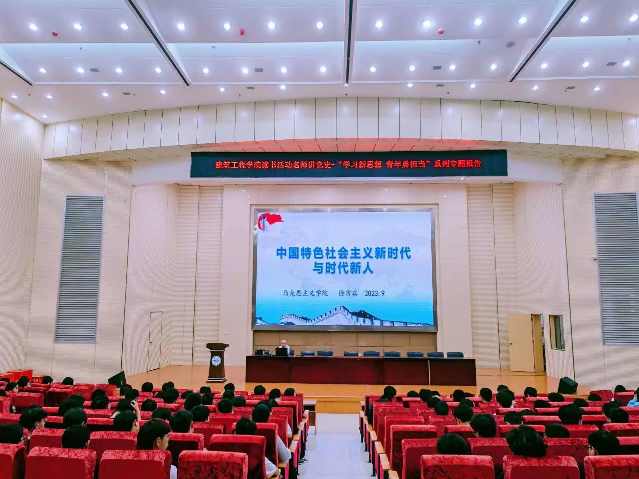 9月20日晚,建筑工程学院在图书馆二号报告厅举办党史专题报告。马克思主义学院徐常宾老师作主题为“学习新思想 青年勇担当——中国特色社会主义新时代与青年使命”的讲座。23级300余名学生代表参加活动。