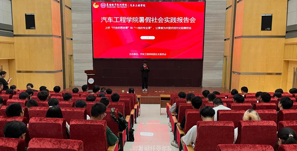 9月29日晚,汽车工程学院在图书馆1号报告厅举办暑期社会实践分享会。汽车工程学院团总支书记孙兆轩,专职辅导员张皓云、熊义豪和学生代表参加分享活动。