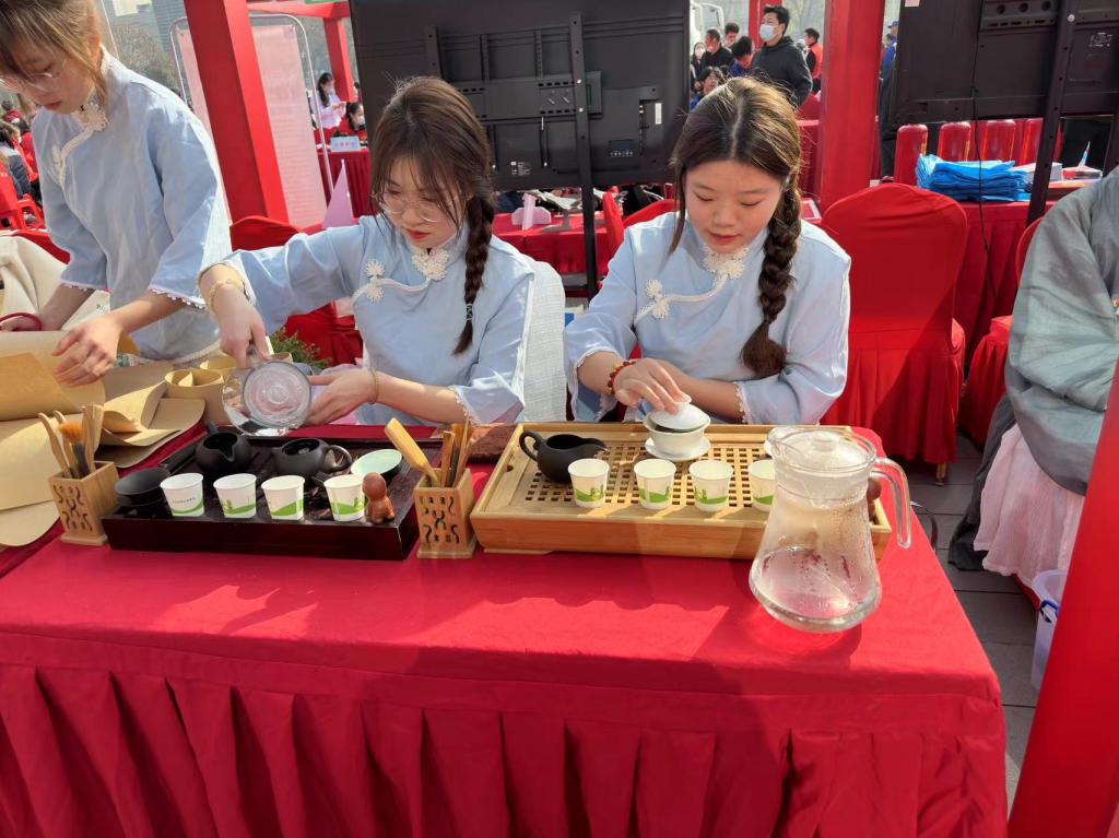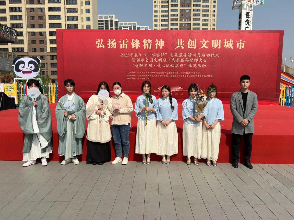 3月4日上午,襄阳市2023年“学雷锋”志愿服务活动月启动仪式暨“青暖襄阳”社区志愿服务“爱心流动集市”市级示范活动在吾悦广场拉开帷幕。现场,来自襄阳职业技术学院志愿服务团队的志愿者,正在进行非遗文化展示,引得众多市民驻足围观。
