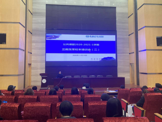 11月19日下午,公共课部全体教师在图书馆1号学术报告厅开展本学期第二轮三教改革校本培训。党总支书记陈建波、课部主任武雪慧参加会议。