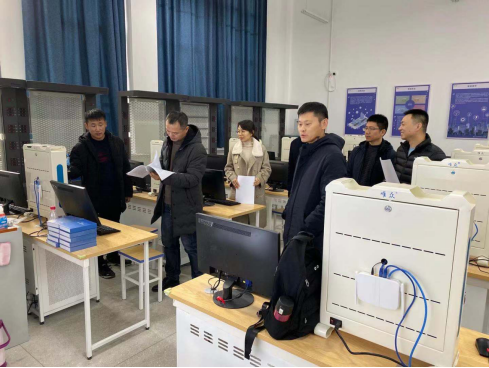 12月11日,学校国资处赵杰处长、贾海云带领专家罗世煜教授来到信息技术学院,对物联网专业实训室进行验收。信息技术学院院长王保成,实训中心主任田勇、物联网研究室主任代颖,设备厂商武汉唯众公司参加了此次验收。