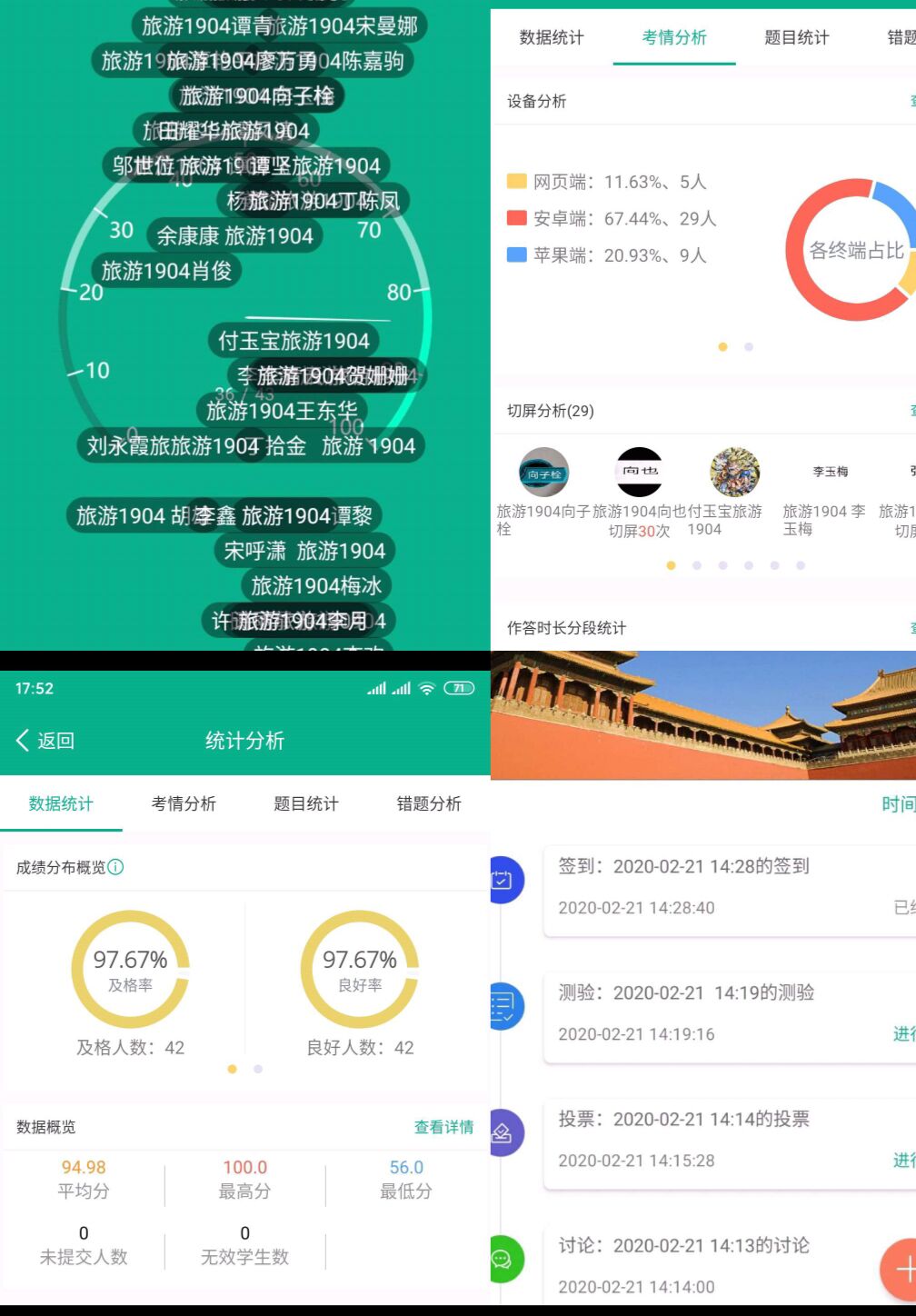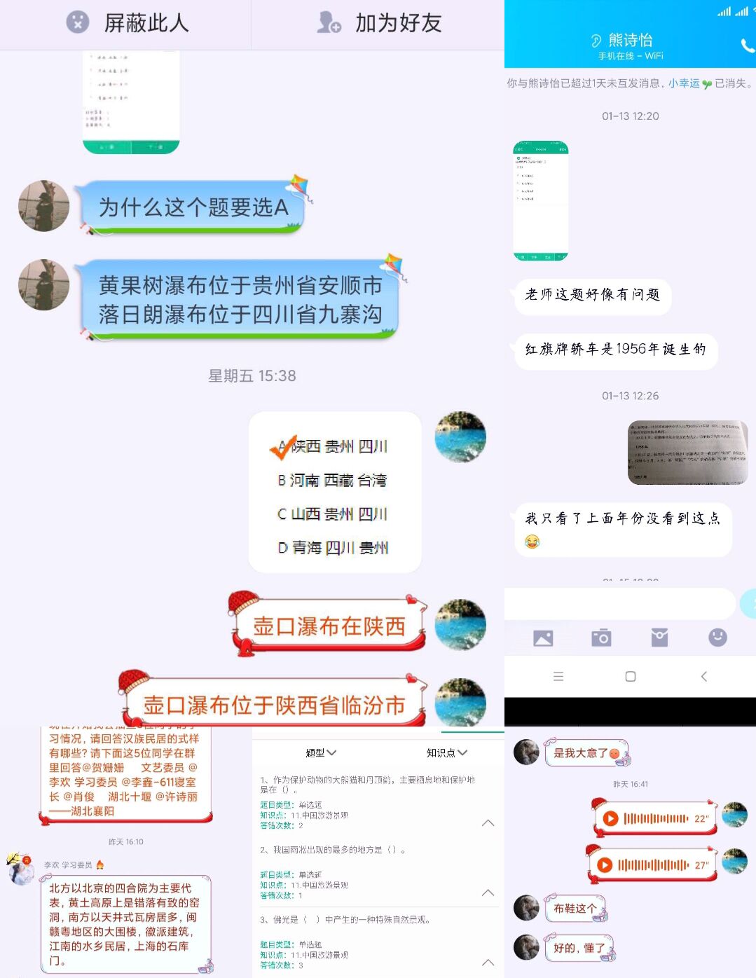 出门前换上好心情,一起去“旅行”。随着老师的一声“上课了”,我们准时签到,全班同学汇聚在“云课堂”,网课的学习不仅让我们体验了不一样的学习氛围,没有了老师和周边同学目光聚焦的我们,交流的欲望似乎更强烈。“停课不停学”,尽管新冠疫情之下我们每个人都紧绷一根弦,但是易老师的云课堂却让我们觉得生活还是充满乐趣的。宅在家中,也能跟着易老师的步伐看遍山川河流,领略各地人文风光。在课堂上,我们似乎能感受到疫情即将胜利的希望和美好!