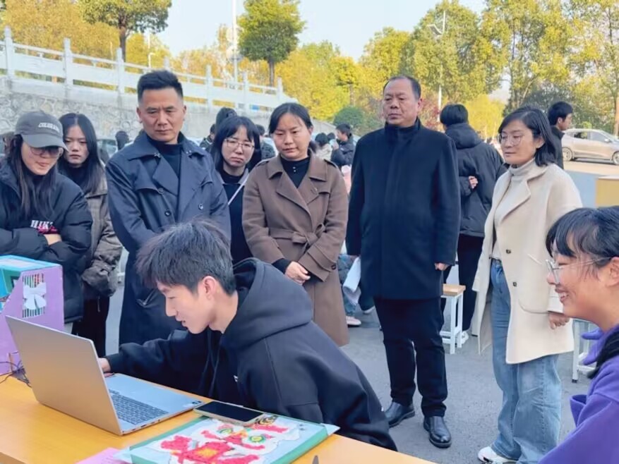 12月4日下午,信息技术学院在智造工业中心B栋前广场举办第十七届科技文化节作品展。学校学工处处长但耀卿、团委书记何娟、社团管理科科长周敏、信息技术学院院长王保成到现场参观指导。