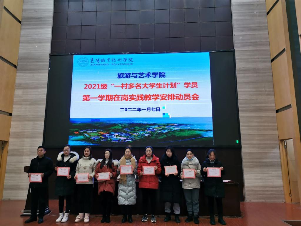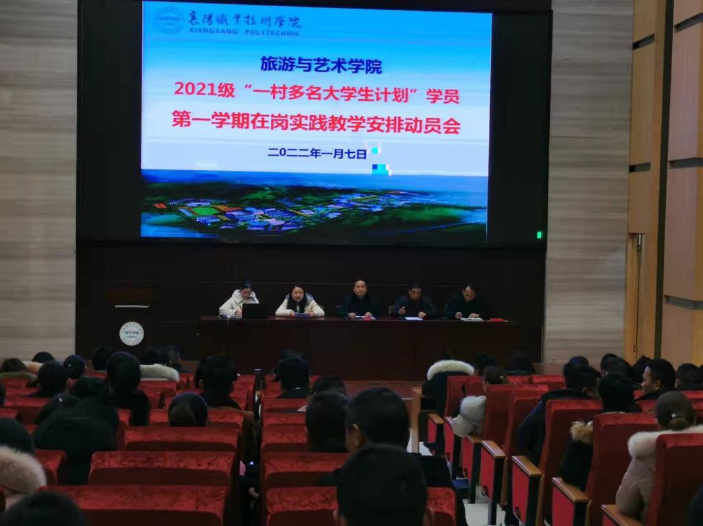 根据“一村多名大学生计划”人才培养方案,2022年1月10日—2月25日为2021级旅游与酒店经营管理“一村多”学员在岗实践阶段。为帮助学员使其将在校所学理论知识应用于农村经济及管理工作之中,巩固在校集中期间所学知识与技能,明确学习任务,达成学习目标,1月7日上午,旅游与艺术学院在图书馆1号学术报告厅召开了“一村多”学员实践教学动员会。旅游与艺术学院党总支书记王壮、副书记吴天中、副院长张菊芳、教学秘书杨丽以及全体2021级“一村多”学员参加了此次会议。