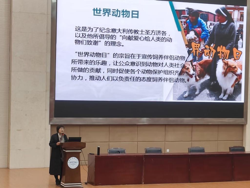 11月28日下午四点半,农学院小动物保护协会在图书馆二号报告厅举办“文明养犬,爱护动物”主题讲座。农学院老师陈秋实主讲。各院部生活委员参加活动。