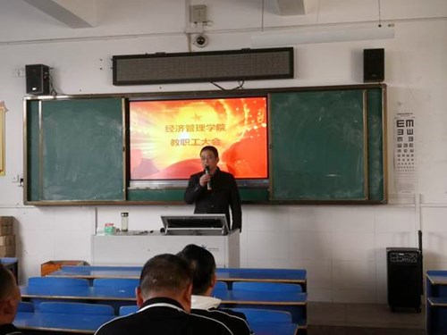 10月29日下午,经济管理学院在笃学楼召开全体教职工大会。