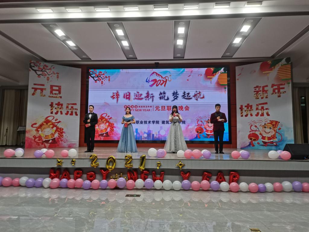 12月24日晚,建筑工程学院2021年“辞旧迎新 筑梦起航”元旦晚会在智造大楼4楼报告厅拉开帷幕。学工处副处长赵良虎和建筑工程学院全体师生欢聚一堂,共享视听盛宴。