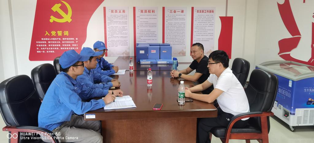 在公司党建办公室里,向炜一行与校友代表郝少东、余骁、肖思鑫进行了交流,通报了学校目前发展状况和建设成就。校友代表们详细介绍了各自的工作、生活情况,并对学校的专业建设和人才培养提出了建议。他们表示,目前,学校和企业合作关系良好,毕业生质量受到公司一致好评,希望后续加强合作,他们也将努力为学弟学妹们做好引领工作,使他们更好地为公司服务,为母校争光。