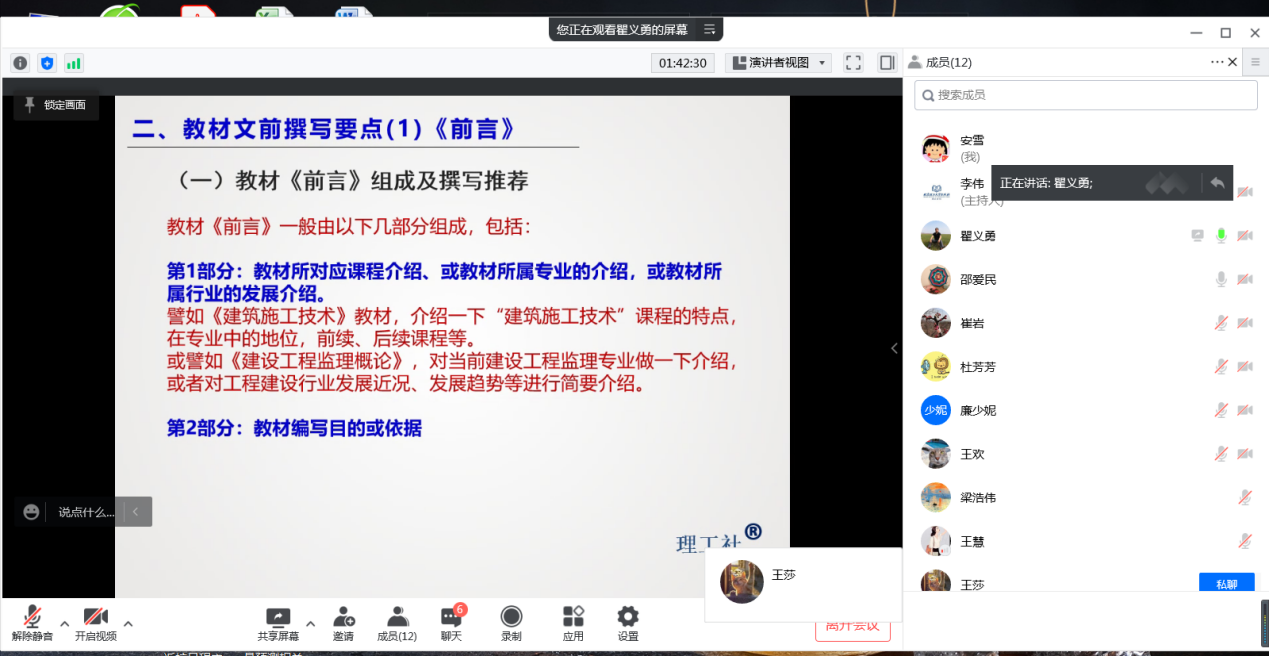 会议采用腾讯会议方式进行。会上,各课程负责人介绍了团队课程建设;行业专家针对编写内容、教材形式、图文排版等问题给出专业指导意见。