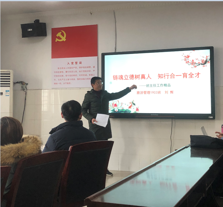 1月18日、19日下午2点半,旅游与艺术学院连续两天在院部会议室举行班主任班级管理“大一说班级、大二说精品”业务技能比拼”。全体学工人员、相关班主任参加活动。
