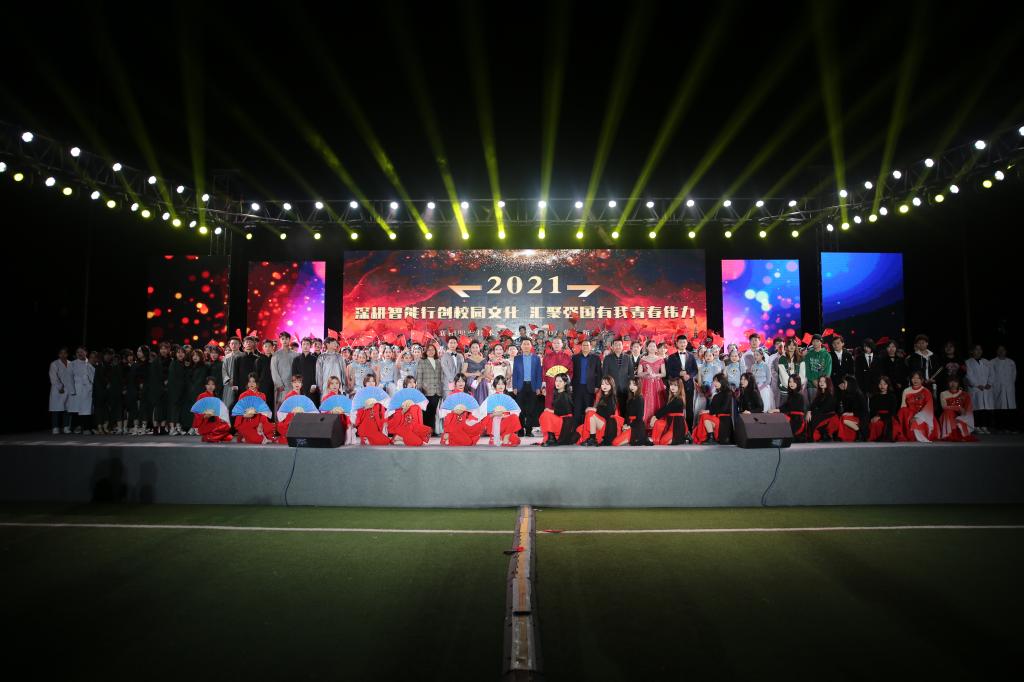 10月21日晚,由校学工处、团委主办,医学院承办,师范学院协办的“深耕智能行创校园文化 汇聚强国有我青春伟力”2021年迎新晚会在医学院南校区足球场隆重举行。学校副校长章伟、学工处处长但耀卿、主任林颖和全体2021级新生、班主任们一同观看了表演。