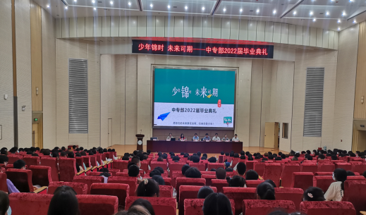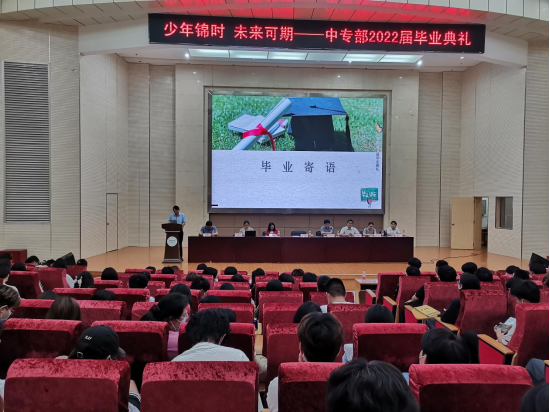 6月2日下午五点,中专部在图书馆二号学术报告厅举行2022届中职生毕业典礼。中专部党总支书记陈建波和全体行政人员、班主任老师和358名学生参加了毕业典礼。典礼由党总支副书记杨森主持。