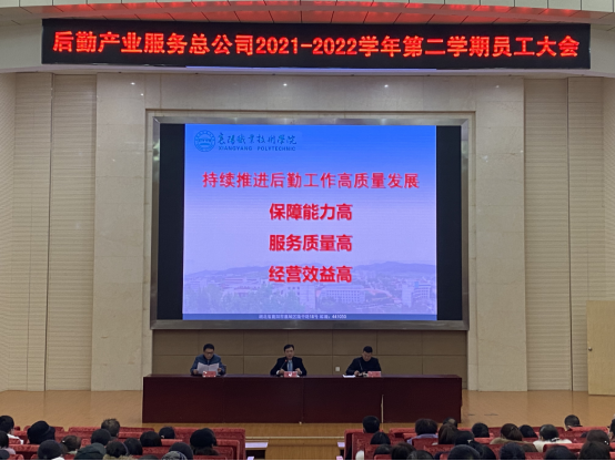 2月16日下午,后勤产业服务总公司在图书馆二号报告厅召开新学期全体员工大会。公司副总经理余涛主持会议。
