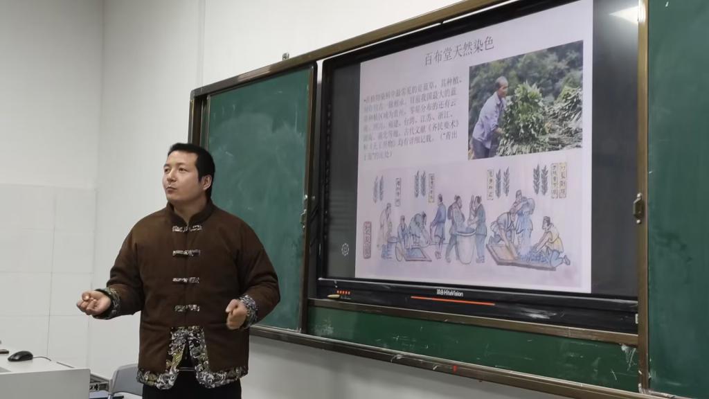 课程中,两位非遗大师以中国传统手工纺织暨枣阳粗布的历史文化、制作工序、织布技艺、织物印染和创新应用等为教学内容,以技艺传授、示范指导为手段,让学生全面掌握、了解枣阳粗布制作技艺的知识和技能,并能将非遗技艺有效地融入人才培养方案之中。