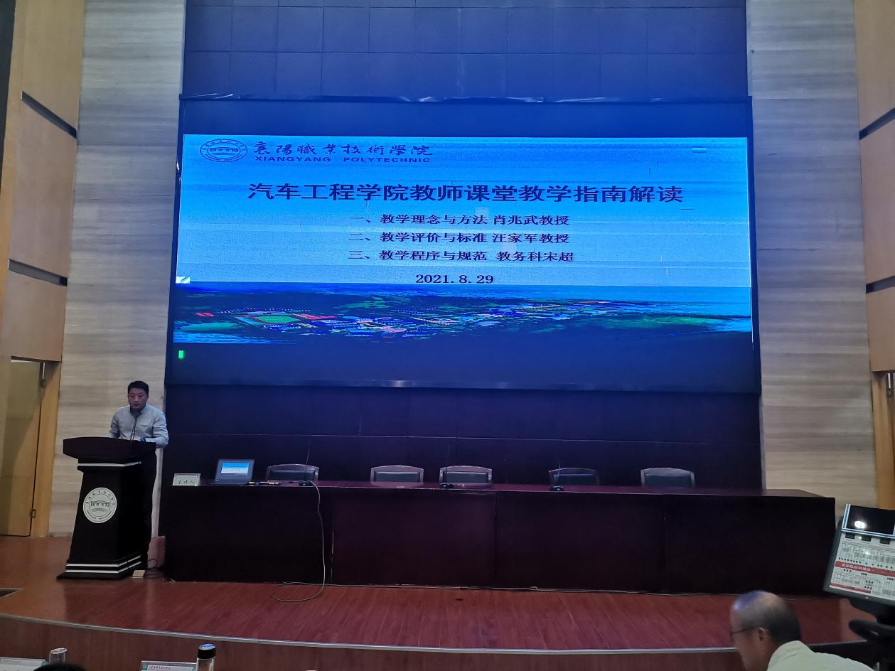 8月29日,汽车工程学院在图书馆一号报告厅召开学期初教师培训会,组织全体教师和校外兼职兼课教师学习质量办发布的《教师教学指南》。本次培训由副院长沈先飞主持。