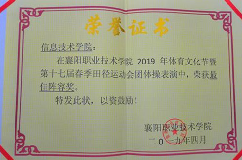 本次运动会,信息技术学院取得高职男子400米和实心球两个单项第一的好成绩。该院同学统一着装观看运动会,各班级还在校园里开展志愿服务活动,集中展示了团队的精神面貌,受到全校师生的好评,荣获“体育道德风尚奖”和“最佳阵容奖”。