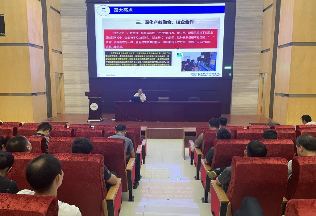 汽车工程学院院长程洪涛从《职业教育法》修改背景、修改思路、四大亮点、全文内容(重点条款)四个方面作了全面讲解。解读简明扼要、重点突出,让全体教职工对修订后职业教育法有了进一步了解,对职业教育的未来、襄职的发展,充满信心和期待。