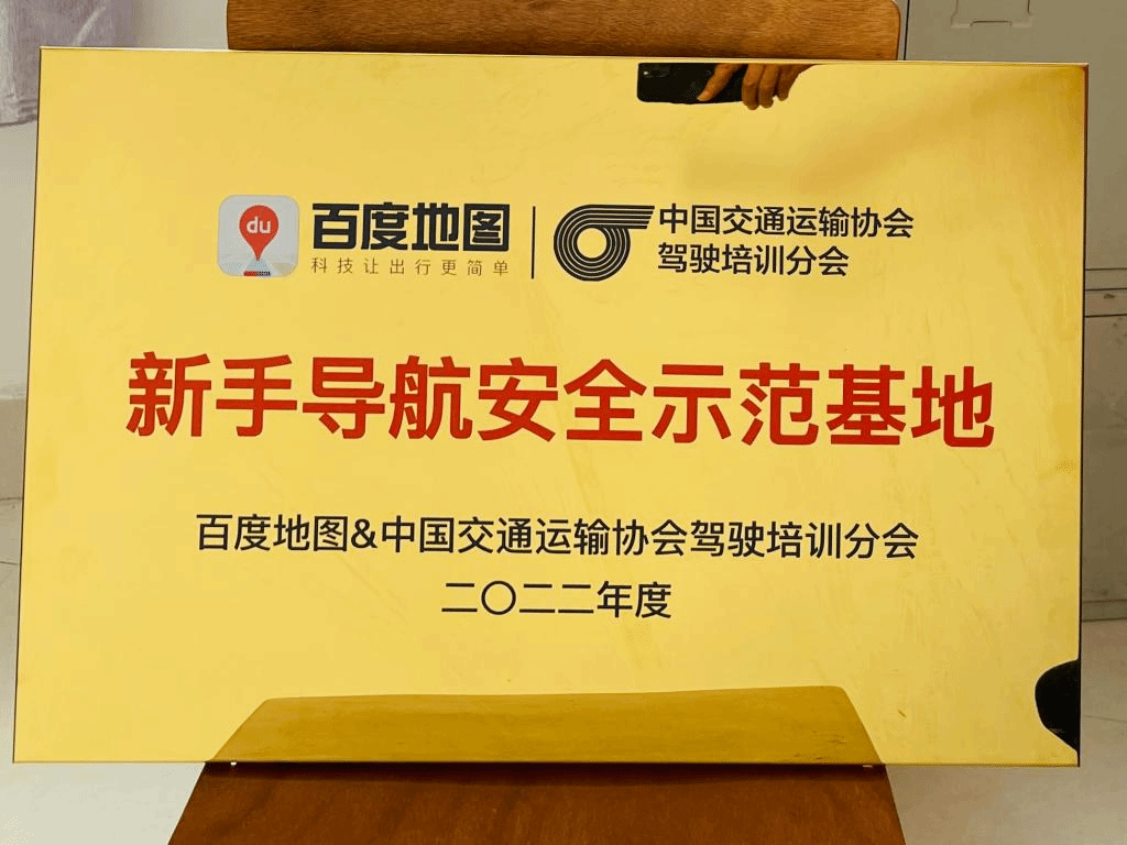近日,我校驾校喜获中国交通运输协会驾驶培训分会和百度地图共同颁授的2022年度“新手导航安全示范基地”牌匾。