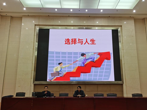 11月28日晚,中专部在图书馆二号报告厅召开2022年高考动员大会。会议由公共课部中专部党总支书记陈建波主持,旅游与艺术学院党总支书记王壮为全体学生做“选择与人生”的励志讲座。