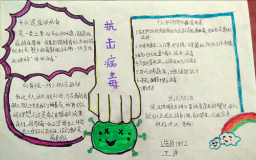任课老师们反映,无论下雨、降温、刮风,王洋同学都克服困难,按时上线,认真记笔记,保质保量完成布置的作业。课余,她帮大姐干农活儿,还通过手抄报,为武汉祝福,为湖北加油!