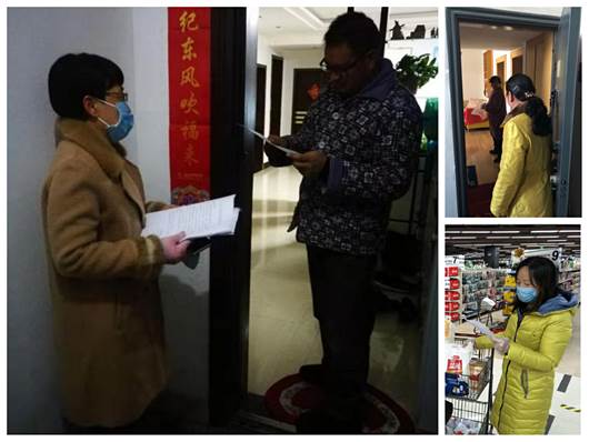 入户排查,测量体温,登记相关信息,为居民购买所需物资。